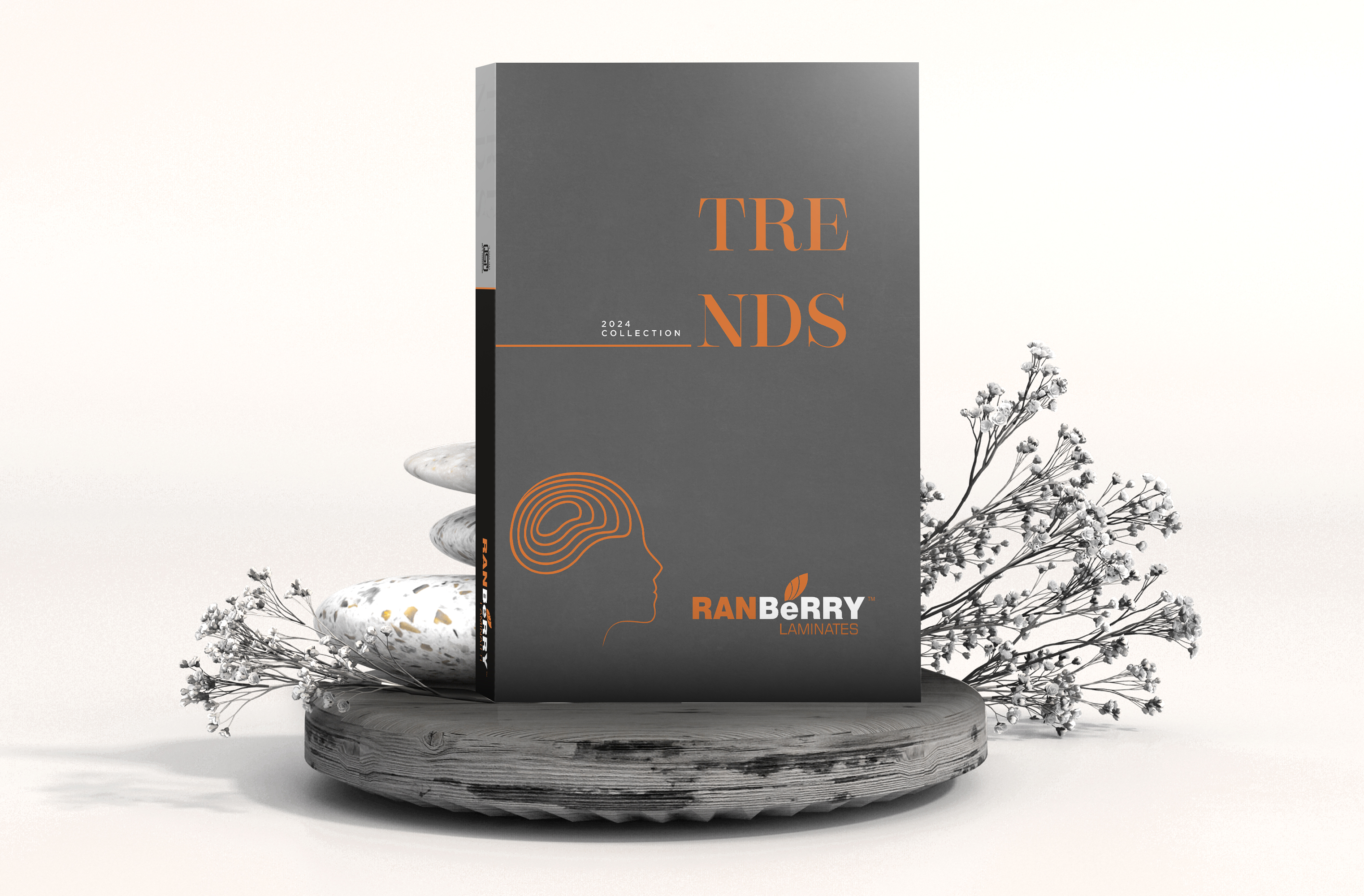 Conceptual Inspiration that captures the essence of modern innovation and forward-thinking with a minimalist yet striking design. Visual Elements that utilize a sophisticated grey background to symbolize timeless elegance, accented with rose gold detailing to highlight sophistication and trendiness. Integrate an abstract representation of a human face and brain, emphasizing creativity, intelligence, and the evolving nature of design trends.
